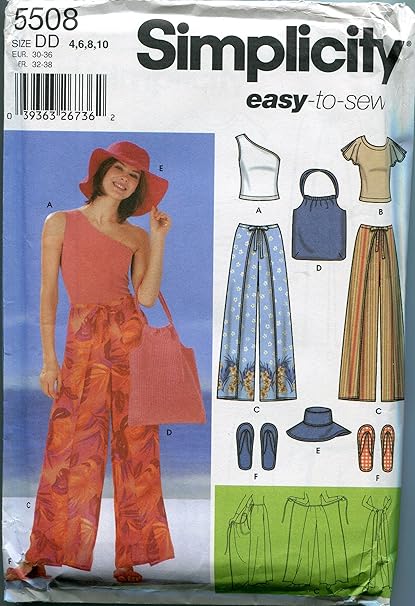 Amazon Com Simplicity Sewing Pattern 5508 Size Dd 4 6 8 10 Misses Wrap Pants Bag Hat Slippers And Knit Tops Hat And Slippers In Three Sizes S M L Arts Crafts Sewing