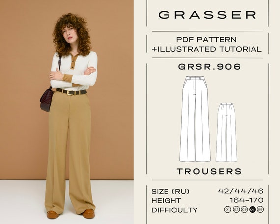Trousers Pdf Sewing Pattern For Women Sizes 42 44 46 Ru Etsy